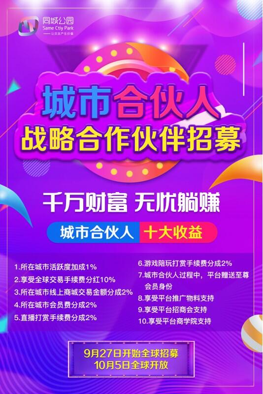 同城公园启动城市合伙人招募计划,共建新社交时代